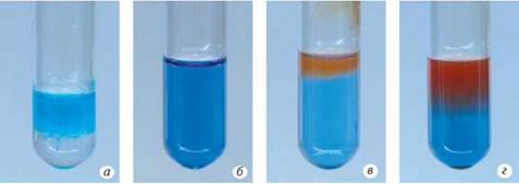 Проаналізуйте рисунок лабораторного дослідження і визначте у якій пробірці підтверджено, що глюкоза - багатоатомний спирт