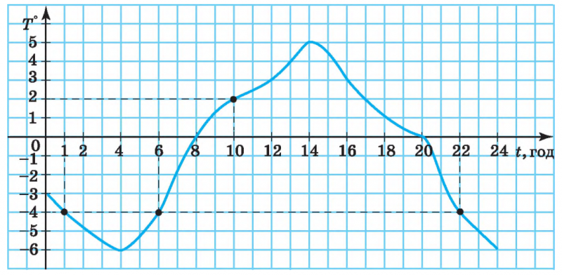 За графіком, зображеним на малюнку знайти о котрій годині температура повітря була 3 0С