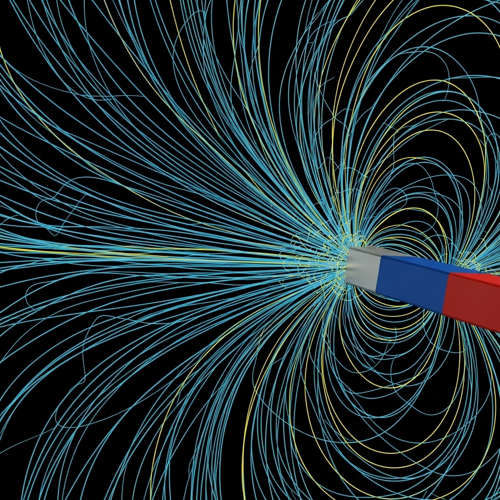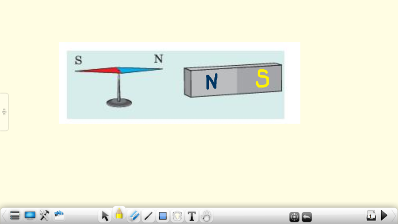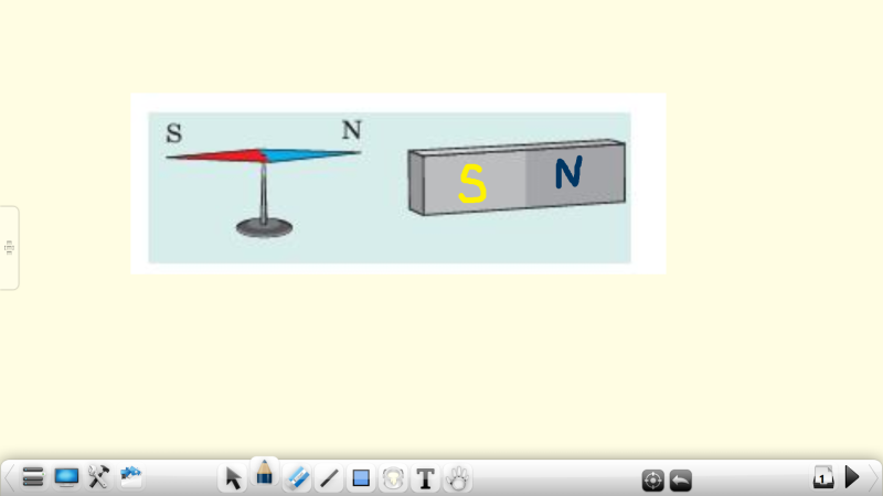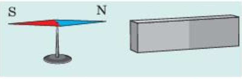 Магнітну стрілку розташували біля штабового магніту. Який полюс магніту є південним, а який — північним?