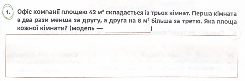 Вибери правильний варіант площі кімнат та модель задачі.