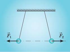 Дві легкі однакові кульки підвішені на шовкових нитках. Кульки зарядили однаковими однойменними зарядами. На якому малюнку зображено ці кульки?