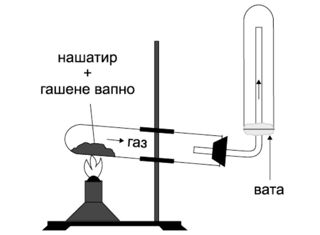 Розгляньте схематичне зображення приладу для добування газу. Який газ добувають у такий спосіб.