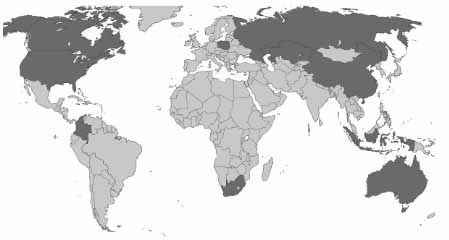 На картосхемі темним кольором виділено території десяти країн, що утворюють групу світових лідерів за обсягом експорту: