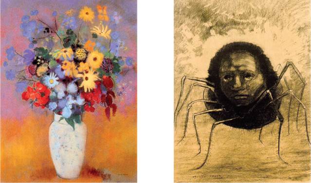 Творчість якого художника-симвліста поділяється на два періоди: "чорний" та "кольоровий"?