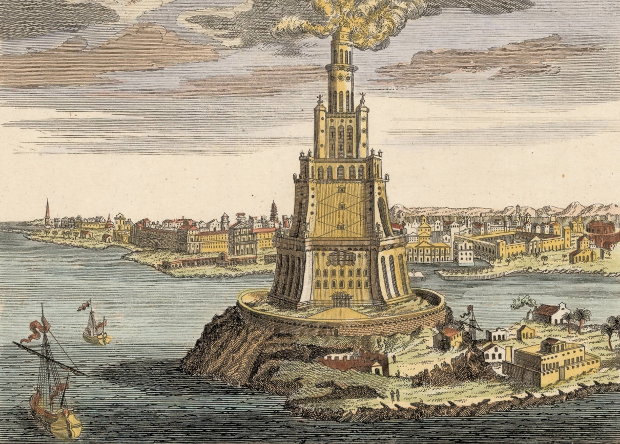 Де постійно горіло багаття, світло якого підсилювався за допомогою металевих увігнутих дзеркал, і було видно на відстані 60 кілометрів?