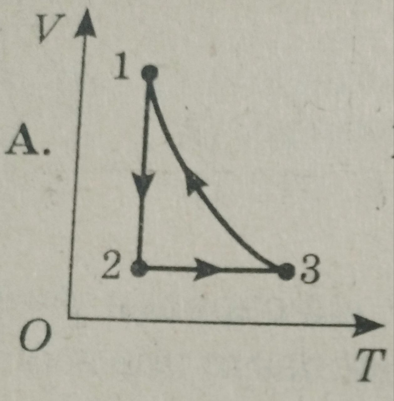 На малюнку в координатах р(V) подано замкнений цикл для деякої маси ідеального газу. Який графік відповідає наведеному циклові і в іних координатах?