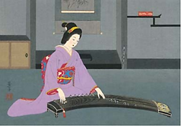 Із запропонованих світлин, оберіть ту, на якій зображено японський музичний інструмент кото.