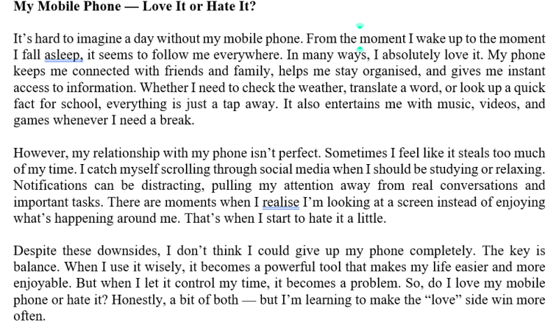 Read an article on the topic “ My Mobile Phone — Love It or Hate It?” and do the multiple choice questions: