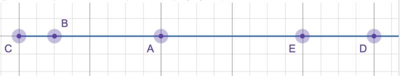 На рисунку зображений координатний промінь. Координата точки B=1.