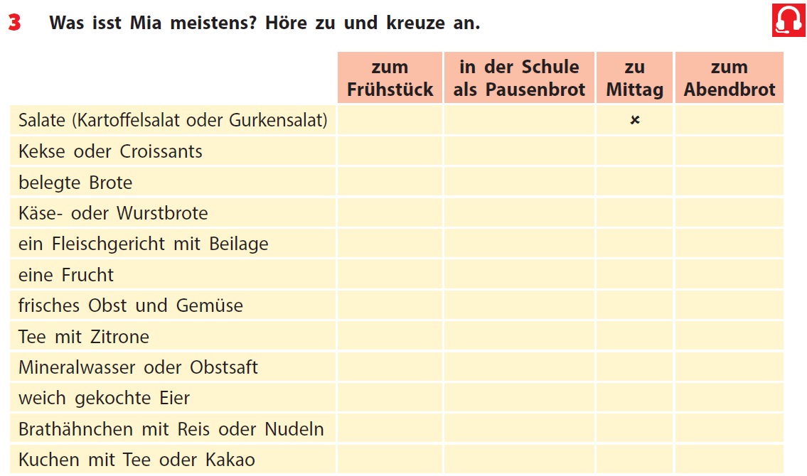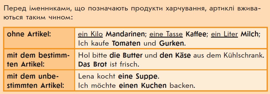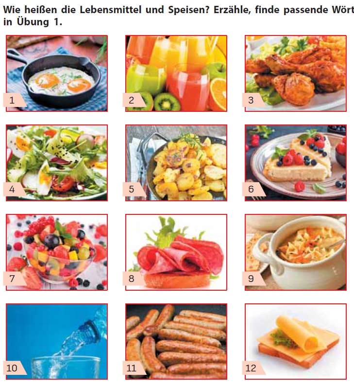 Приклад запитання: Wie heißen die Lebensmittel und Speisen?