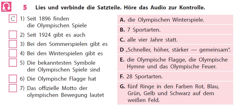 Приклад запитання: Seit 1896 finden die Olympischen Spiele