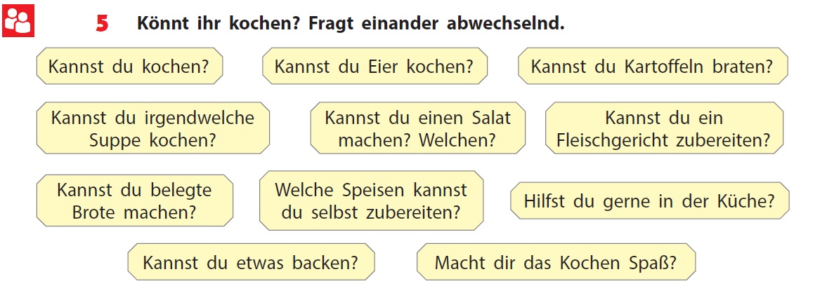 Приклад запитання: Kannst du kochen?