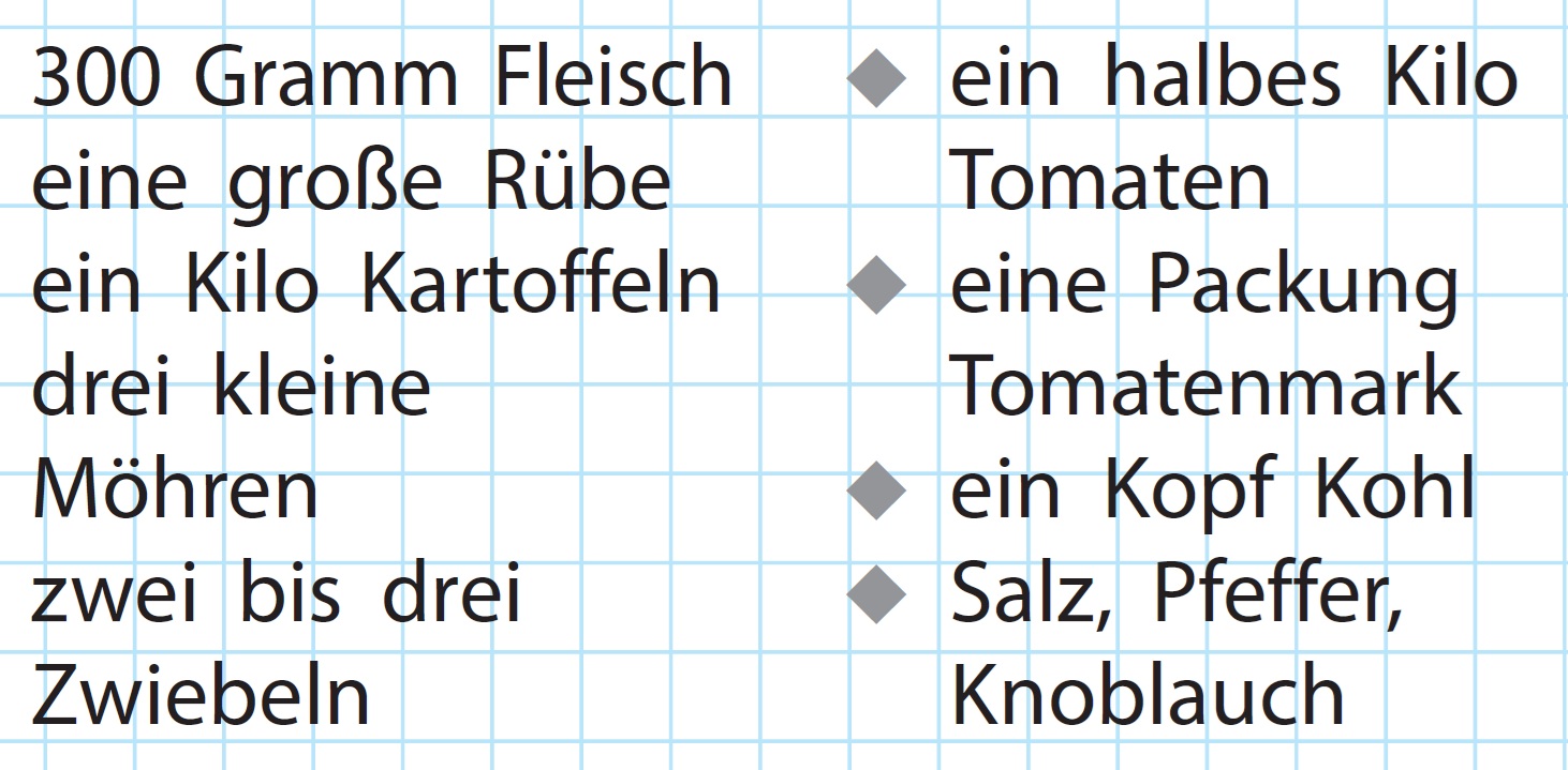 Приклад запитання: Kauf bitte … Kilo … Mehl.