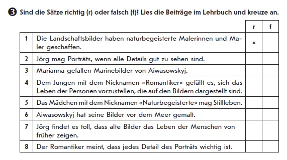 Приклад запитання: Die Landschaftsbilder haben naturbegeisterte Malerinnen und Maler geschaffen.
