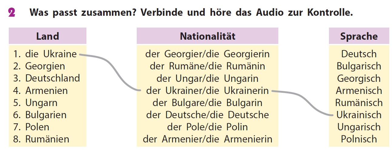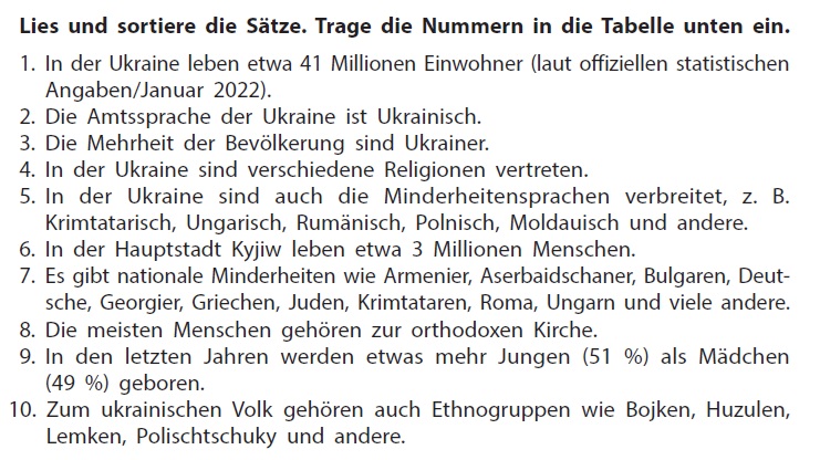 Приклад запитання: 1. Wo liegt die Ukraine?