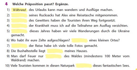 Приклад запитання: ... des Urlaubs kann man wandern und Ausflüge machen.