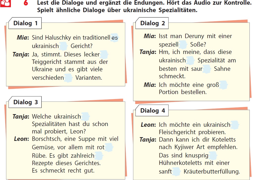 Приклад запитання: Sind Haluschky ein traditionell- ukrainisch- Gericht?