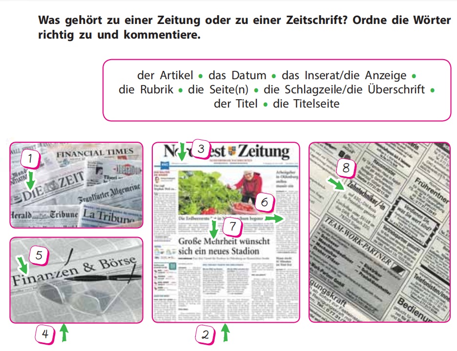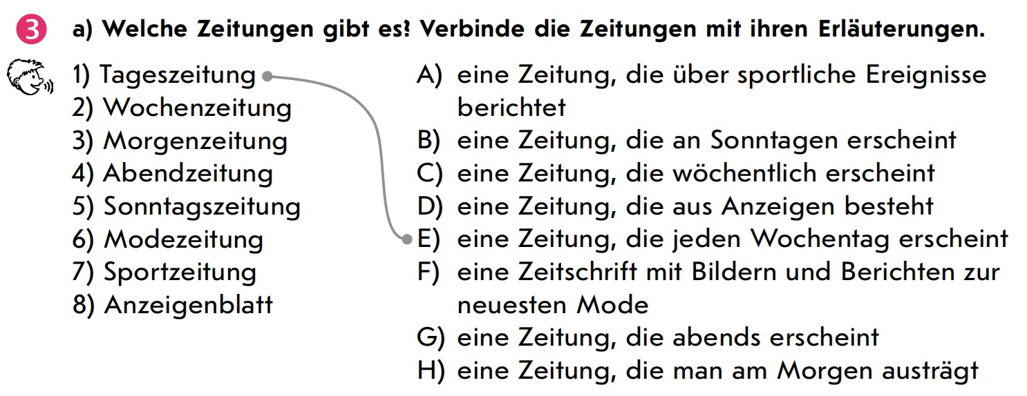 Приклад запитання: eine Zeitung, die über sportliche Ereignisse berichtet