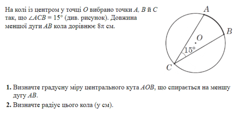 Розв'яжіть за малюнком задачу. У відповідь запишіть діаметр кола.