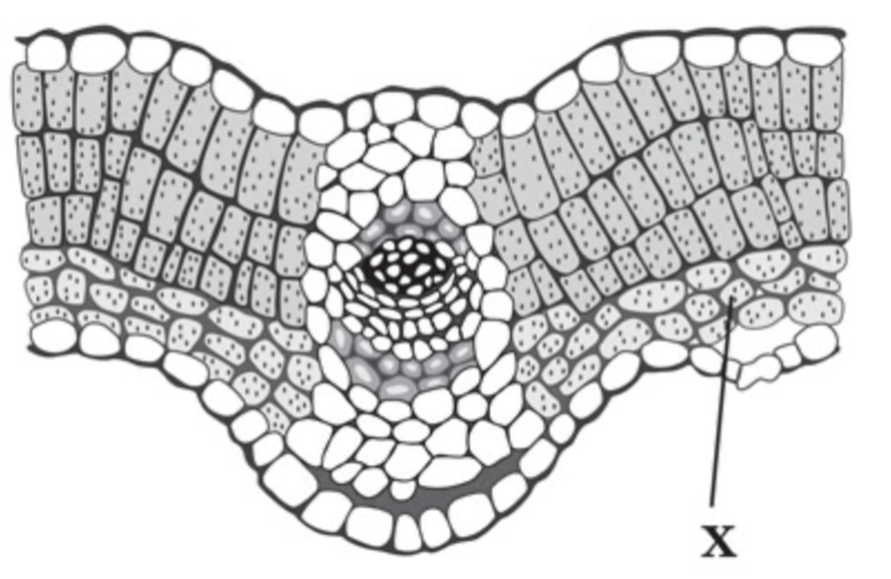 На рисунку зображено поперечний розріз листка. Яка складова, позначена буквою Х?