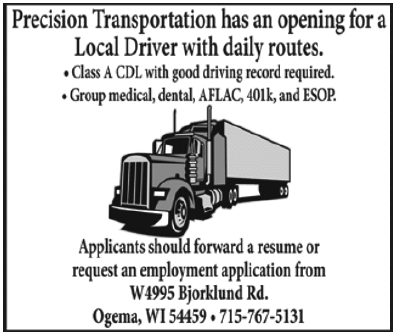Precision Transportation has an opening for a Local Driver with daily routes.