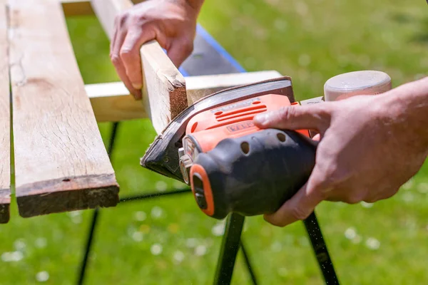 Оберіть картинку, на якій зображено процес-шліфування деревини.