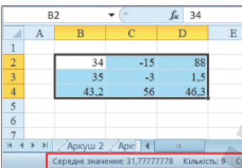 Які елементи входять до стандартного інтерфейсу вікна Excel?