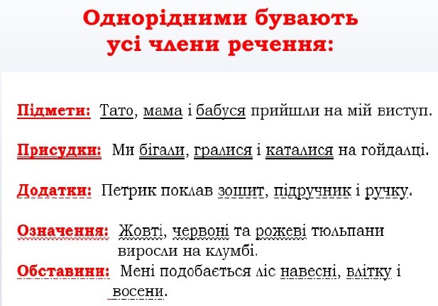 члени речення, які відповідають на одне й те саме питання і відносяться до одного слова