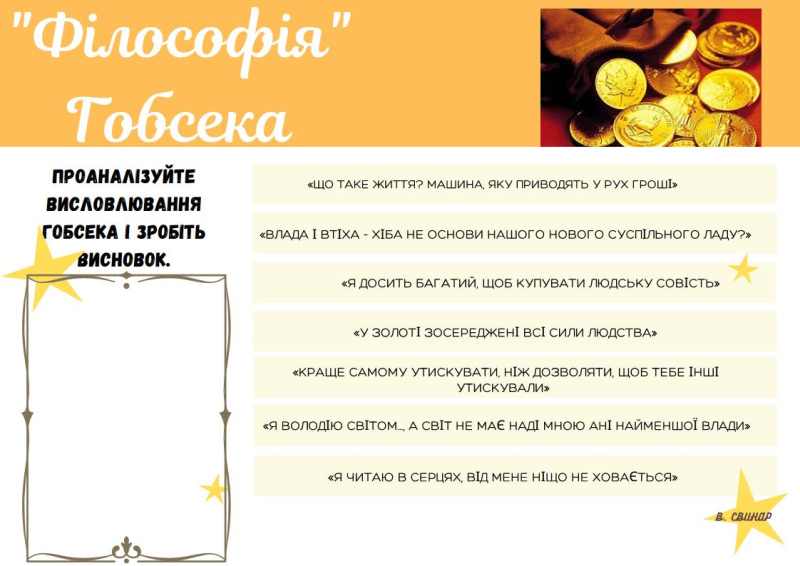 9. Визначте один із принципів Гобсека?