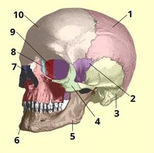 Установи, під яким номером зображено скроневу кістку скелета голови: