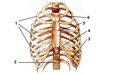 Визнач назву частини скелета тулуба під номером 1: