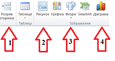 Для додавання графічних об'єктів до текстового документа призначені інструменти на вкладці: