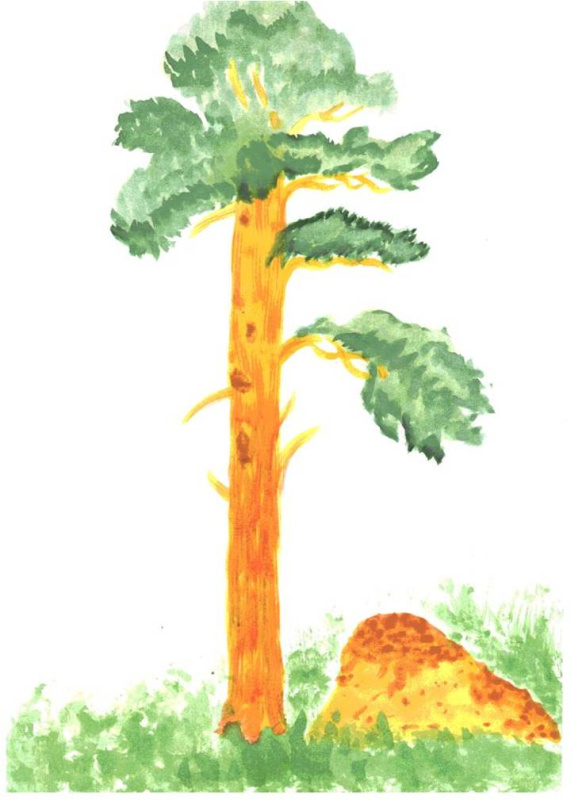 На малюнку мурашник від дерева знаходиться ...