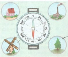 Учень іде в напрямку азимуту 135°. У який бік він рухається?