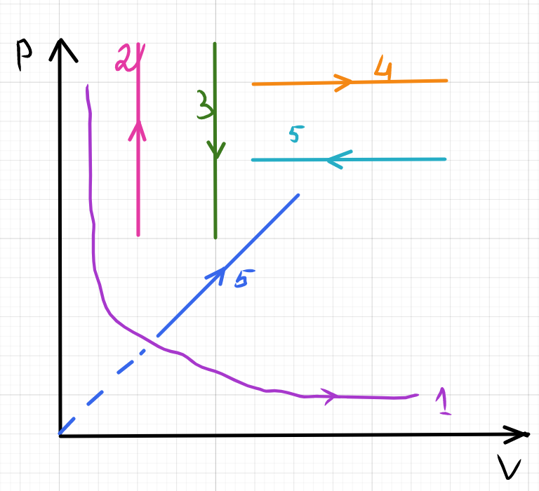 На рис. зображено графіки процесів зміни стану ідеального газу. Який графік відповідає ізохорному охолодженню газу?