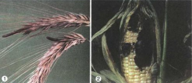 На малюнку цифрою 1, 2 зображено паразитичні гриби: