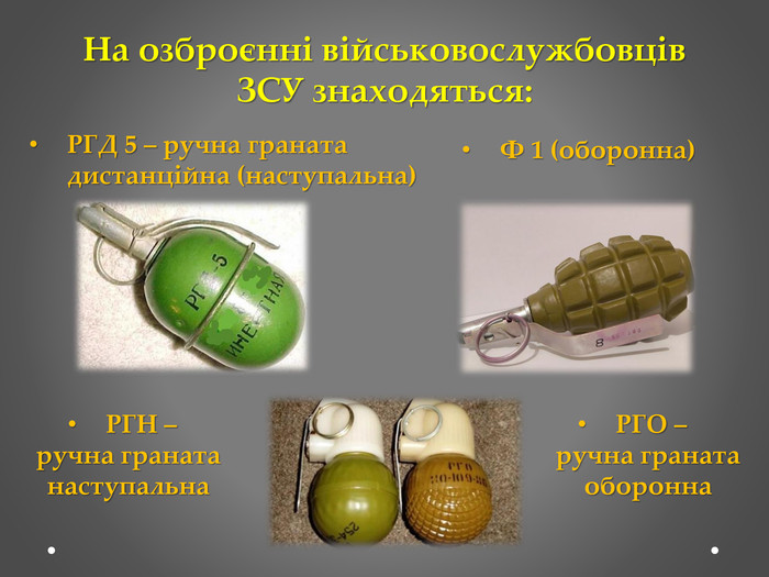 Які основні типи вогнепальної зброї ви знаєте?