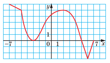 На рисунку зображено графік функції y=f(x), визначеної на проміжку [-7;7]. Укажіть точки мінімуму функції.