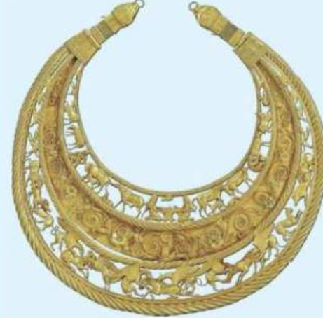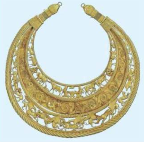 Прикраса скіфського царя що була знайдена в кургані "Товста Могила", та схожа на серп має назву: