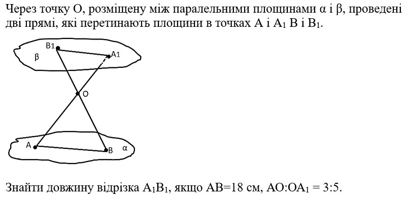 Якщо α ‖ β, то будь-яка пряма, що перетинає площину α, перетинає і площину β.