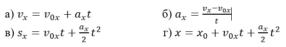 Оберіть рівняння проекції переміщення для рівноприскореного прямолінійного руху.