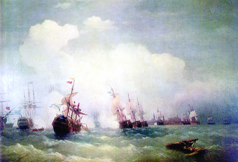 Оберіть всі зображення, на яких зустрічається батальний жанр з високою лінією горизонта