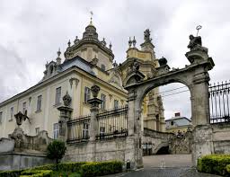 Яскрава пам'ятка українського бароко у Львові, фасад якої вкрито скульптурами у два яруси.
