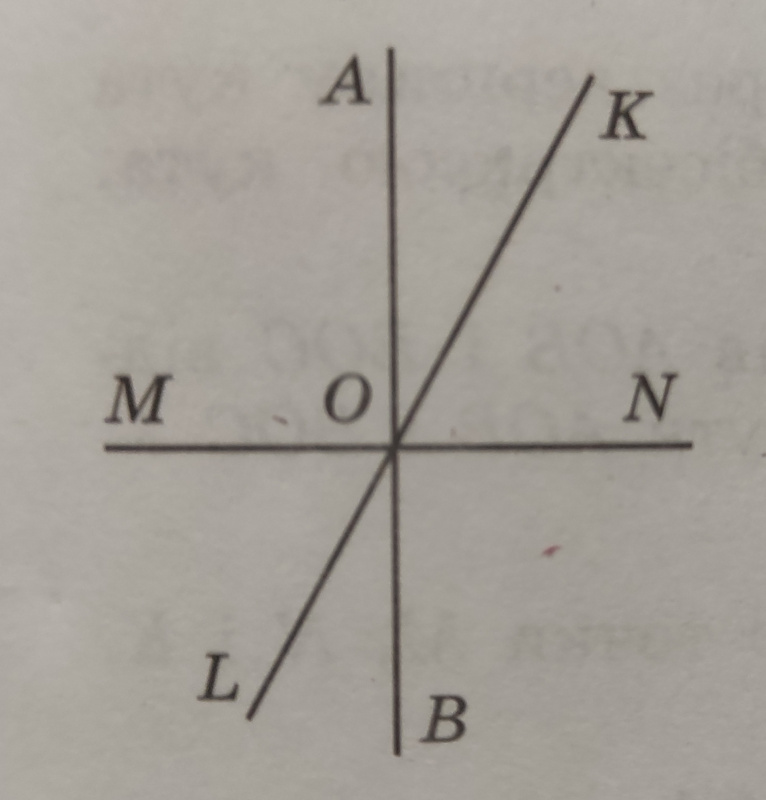 Чи є перпендикулярними прямі AB i MN, якщо ∠MOK=1250, а ∠AOK=300?