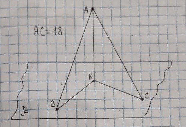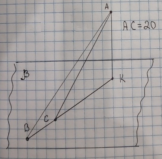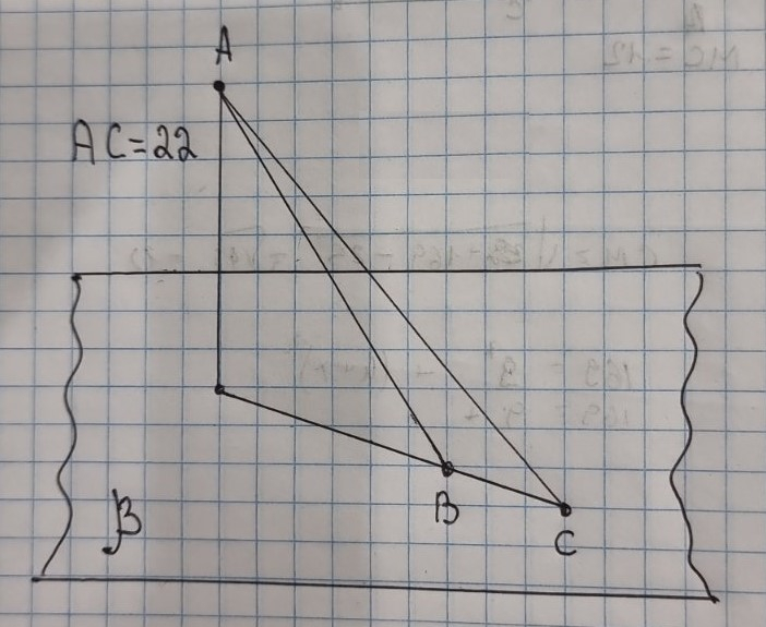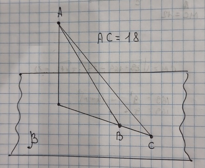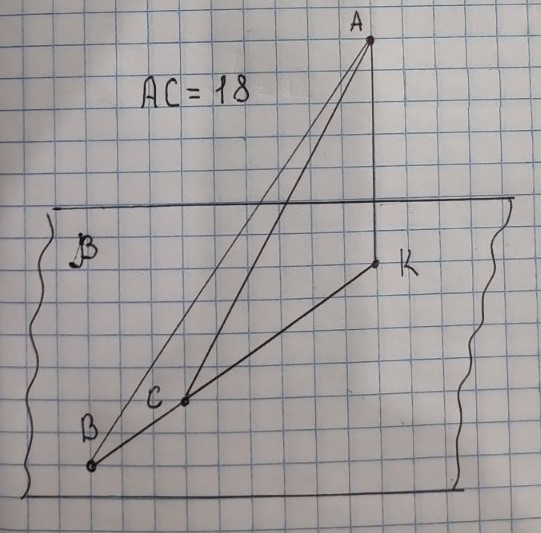 З точки A то площини β проведено перпендикуляр AK та похилі AB i AC, AB=15см, BK=9см, KC=16см. Знайдіть AC і відповідний малюнок