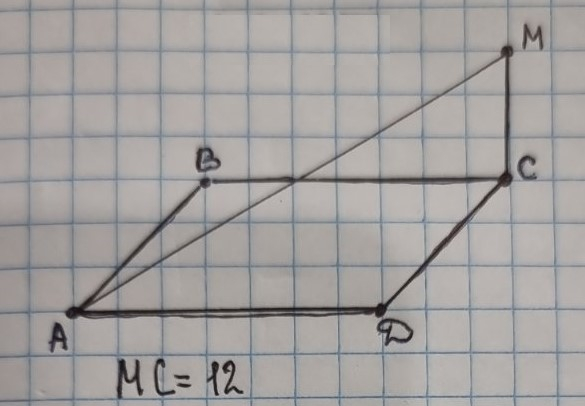 Пряма CM перпендикулярна до площини прямокутника ABCD, AB=4см, BC=3см, AM=13см. Знайдіть CM, і , відповідно, вірний малюнок