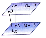Площини α і β паралельні. Точки A,B,C - належать площині α. Точки K,L,M -площині β. AL⊥β, CM∥AL, BK∦AL. Вкажіть відрізки, які виражають відстань між площинами α і β.