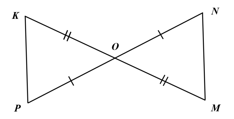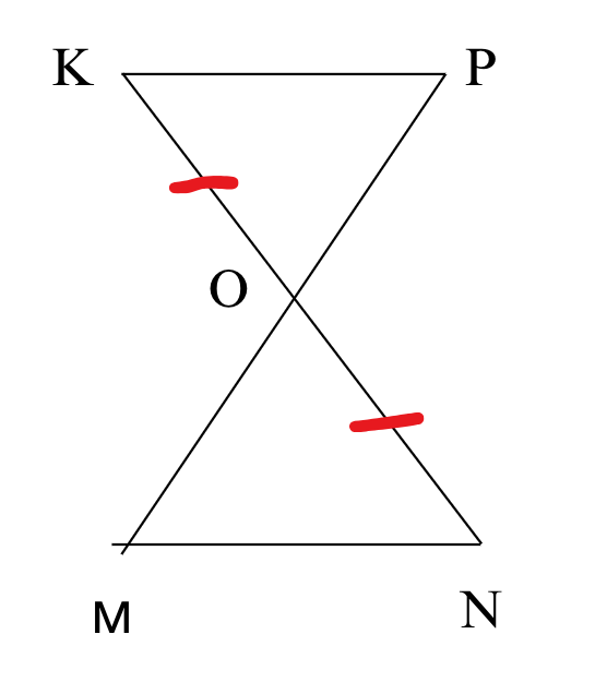 Якої умови не вистачає, щоб рівність трикутників КОР і NOM, зображених на рисунку, можна було довести за другою ознакою рівності трикутників?