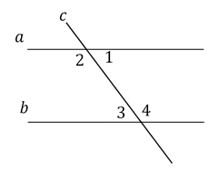 На рисунку дві паралельні прямі а та b перетинає пряма с, ∠1 = 32°.