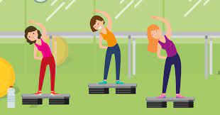Оберіть правильну відповідь де описано заняття степ-аеробіки: